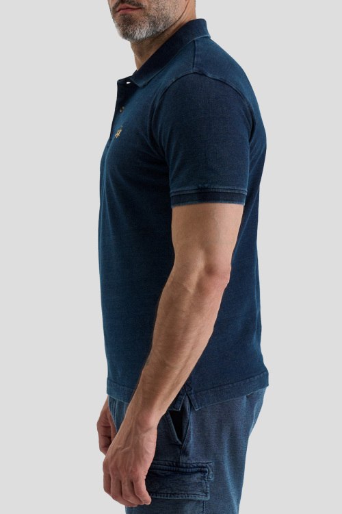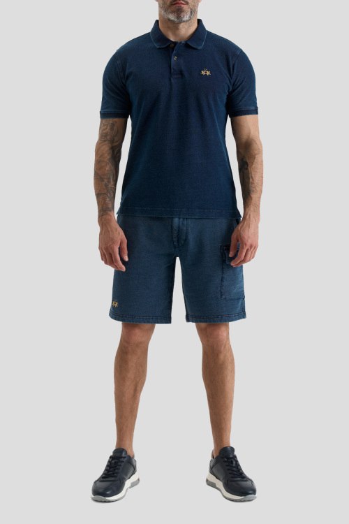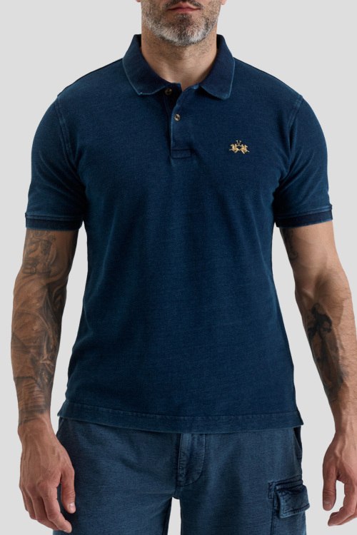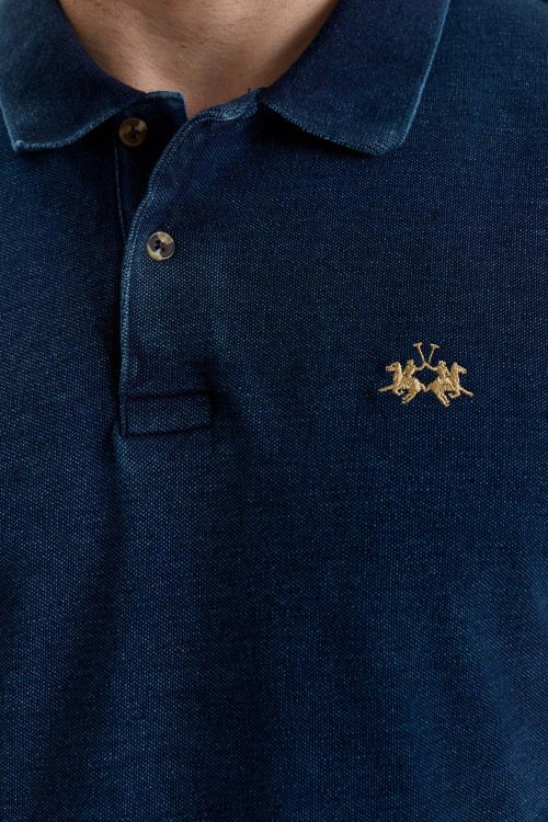 Детали: Мужская темно-синяя хлопковая футболка-поло от La Martina (Ла Мартина). Логотип на груди, отложной воротник, застежка на две пуговицы, короткий рукав, классическая длина