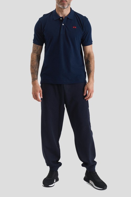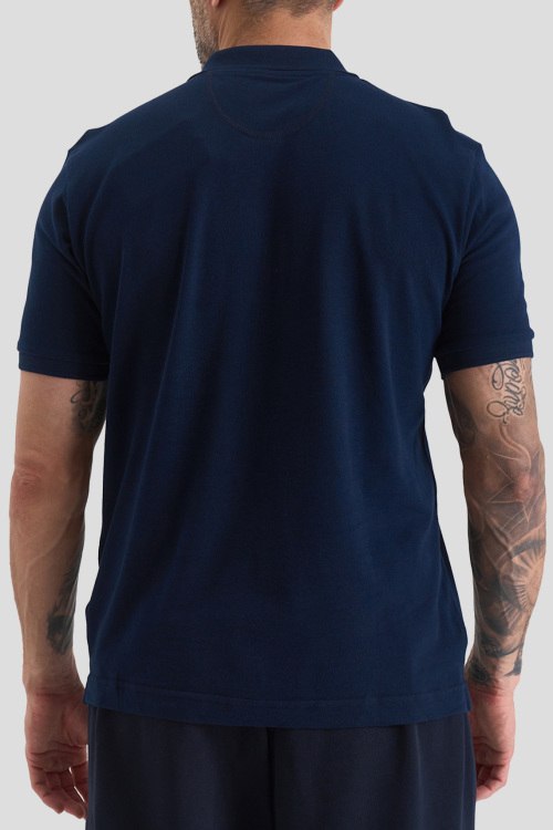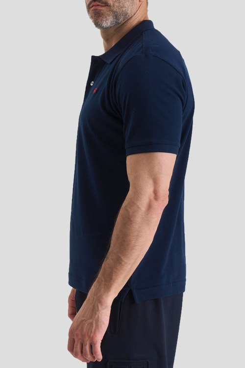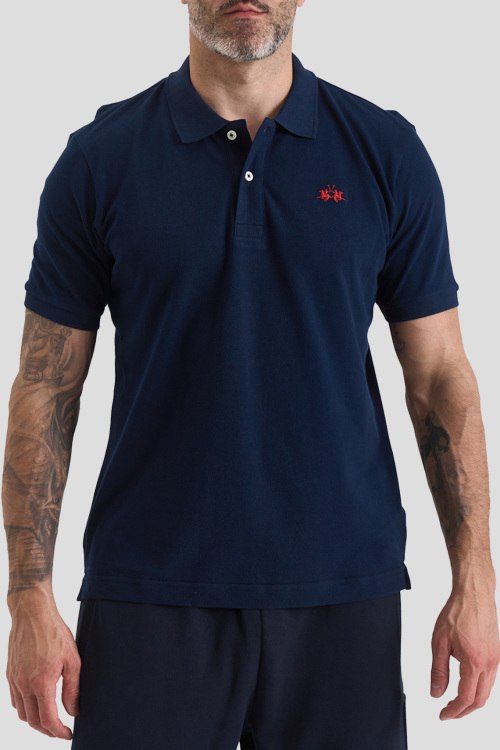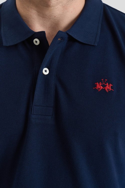 Детали: Мужская темно-синяя хлопковая футболка-поло от La Martina (Ла Мартина). Логотип на груди, отложной воротник, застежка на две пуговицы, короткий рукав, классическая длина