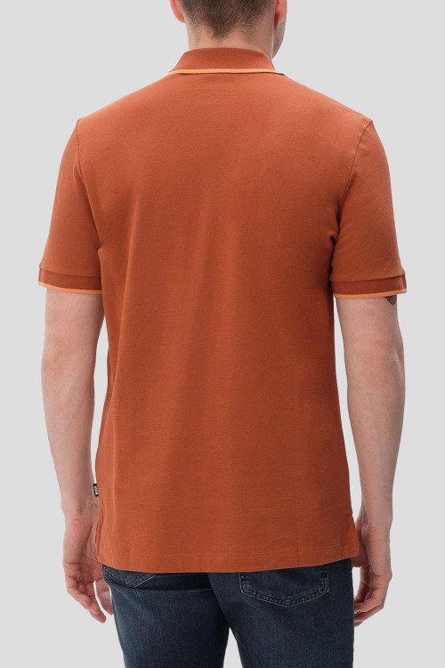 Детали: Мужская терракотовая хлопковая футболка-поло Panrose от Hugo Boss (Хуго Босс). Логотип на груди, отложной воротник, застежка на две пуговицы, короткий рукав, классическая длина