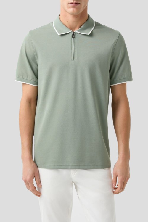 Детали: Мужская оливковая хлопковая футболка-поло Timo от Bogner (Богнер). Отложной воротник, застежка-молния, короткий рукав, классическая длина