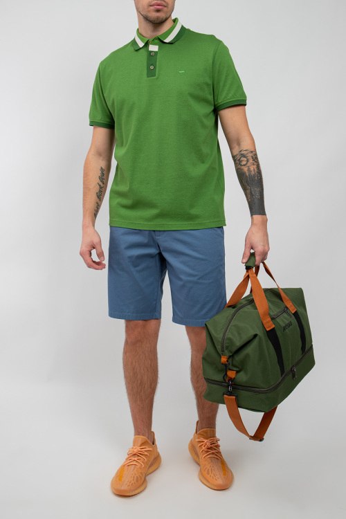 Мужская зеленая футболка-поло из хлопка от Harmont & Blaine (Хармонт энд Блейн). Классический воротник, горловина на пуговицах, короткие рукава, вышитый логотип бренда, по бокам разрезы.