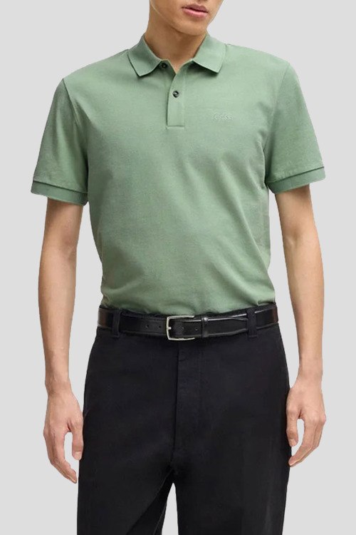 Детали: Мужская оливковая футболка-поло Pallas из хлопка от Hugo Boss (Хуго Босс). Классический воротник, горловина на пуговицы, короткие рукава
