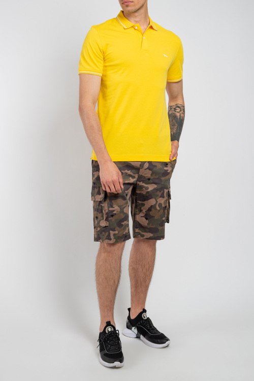 Мужская желтая футболка-поло из хлопка от Harmont & Blaine (Хармонт энд Блейн). Классическая длина, отложной воротник, застежка на пуговицы, короткие рукава, вышитый логотип бренда на груди, разрезы по бокам.