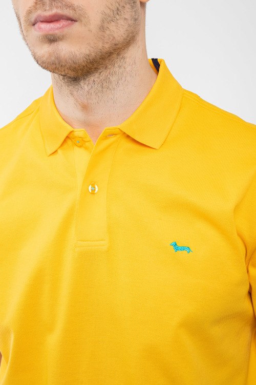 Мужская желтая хлопковая футболка-поло от Harmont & Blaine (Хармонт энд Блейн). Логотип на груди, отложной воротник, застежка на две пуговицы, короткий рукав, классическая длина.