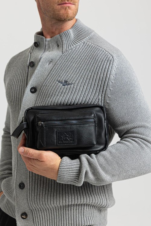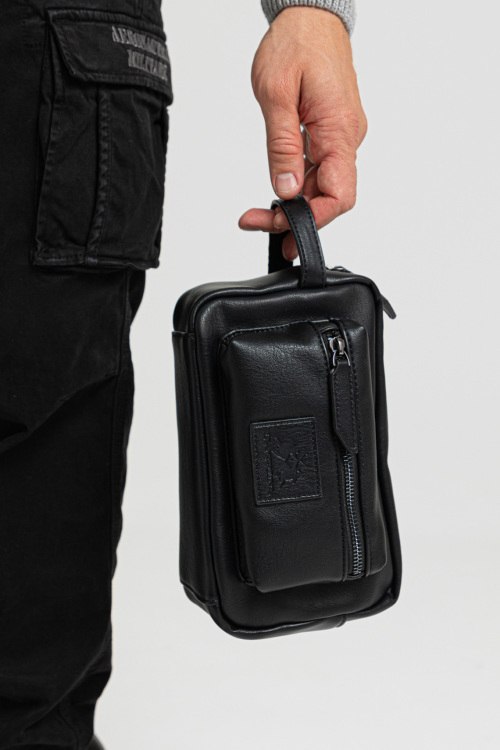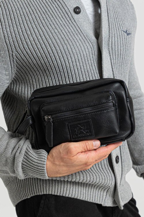 Детали: Мужской черный клатч из экокожи от La Martina (Ла Мартина). Модель из гладкой кожи, нашивка с логотипом, внешний карман на молнии, застежка-молния, одно отделение. Размер: 23 × 14 × 14 см