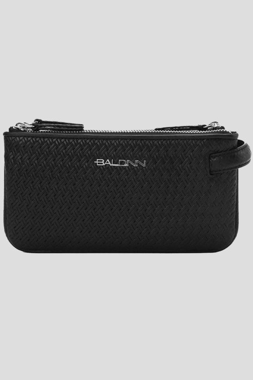 Детали: Мужской черный несессер из натуральной кожи от Baldinini (Балдинини). Плетенный дизайн, три отделения на молнии, три кармана, логотип бренда, несъемная ручка. Измерения: длина: 11 см, ширина: 22 см, ширина по дну: 4.5 см