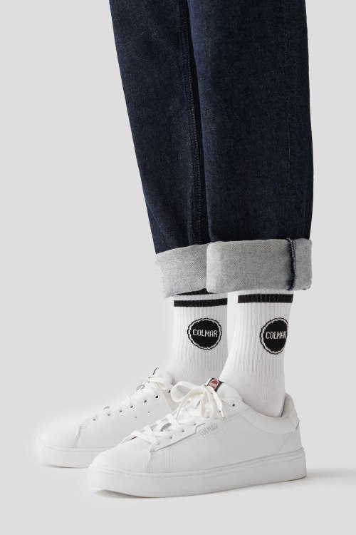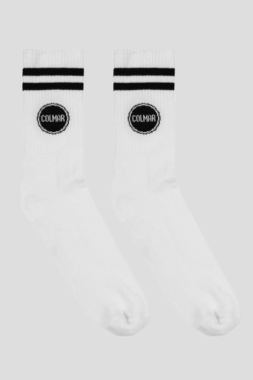 Детали: Мужские белые хлопковые носки от Colmar (Колмар). Высокая модель, вышитый контрастный логотип