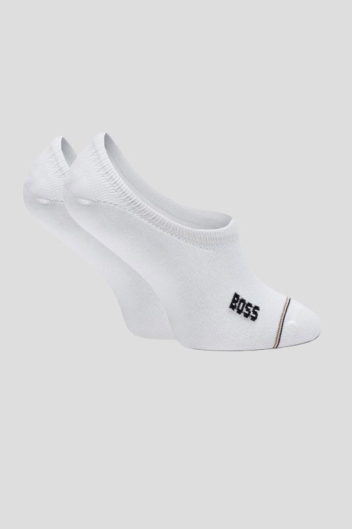 Детали: Мужские белые носки из хлопкового микса от Hugo Boss (Хуго Босс). Короткая модель, дизайн с принтом, логотип бренда, эластичная резинка