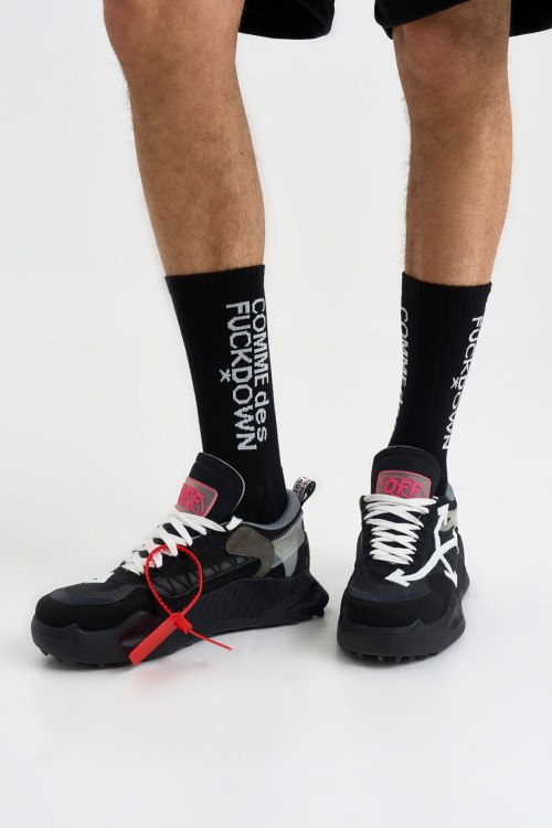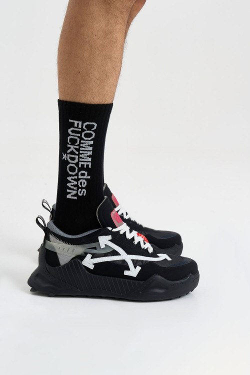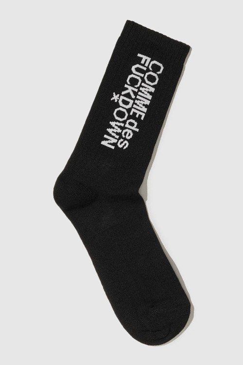 Детали: Мужские черные хлопковые носки от Comme des Fuckdown (Камм дес Факдаун). Высокая модель, вышитый логотип