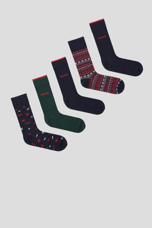 Детали: Мужской набор хлопковых носков от Hugo by Hugo Boss (Хуго бай Хуго Босс). Высокая модель, вышитый логотип. В наборе 5 пар