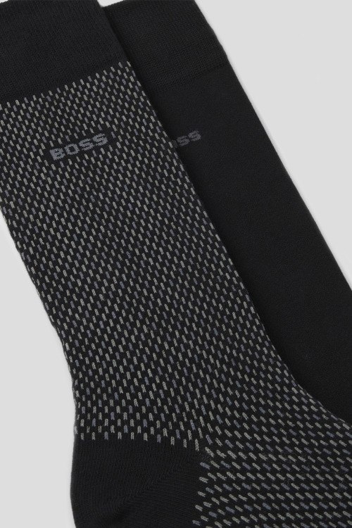 Детали: Мужской набор хлопковых носков от Hugo Boss (Хуго Босс). Высокая модель, вышитый логотип. В наборе 2 пары