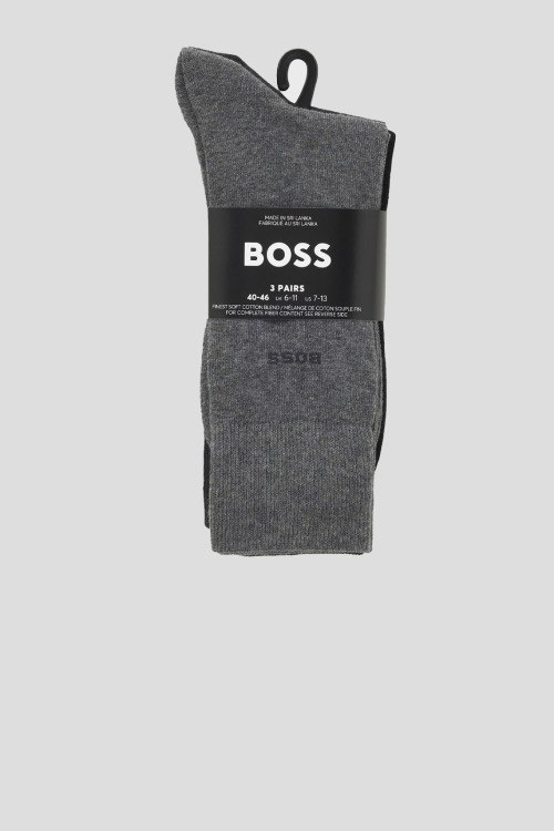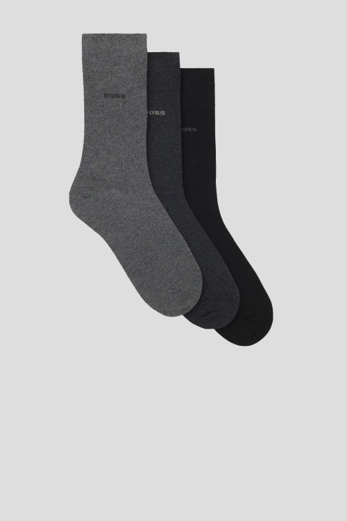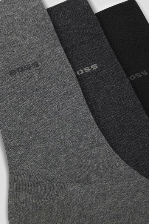 Детали: Мужской набор хлопковых носков от Hugo Boss (Хуго Босс). Высокая модель, вышитый логотип. В наборе 3 пары