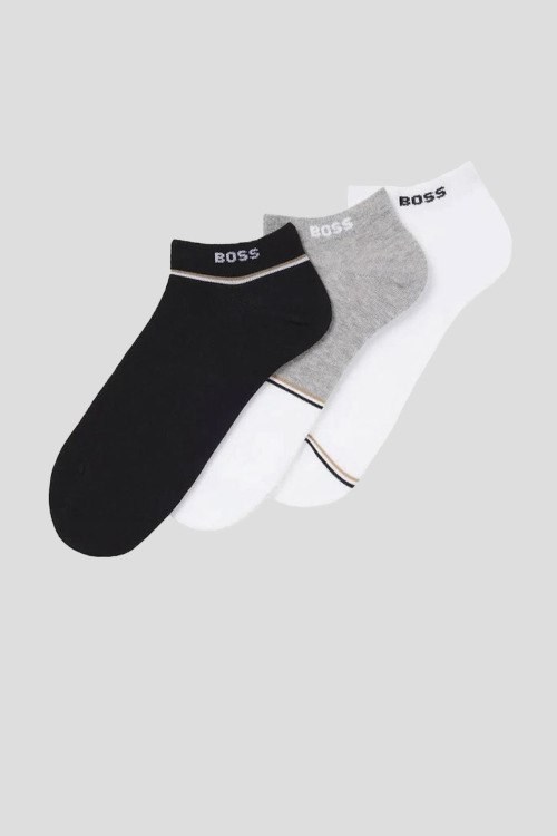 Детали: Мужской комплект хлопковых носков от Hugo Boss (Хуго Босс). Короткая модель, вышитый логотип. В комплекте три пары