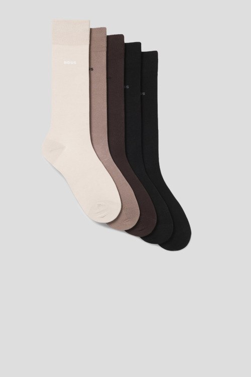Детали: Мужской набор хлопковых носков от Hugo Boss (Хуго Босс). Высокая модель, вышитый логотип. В наборе 5 пар