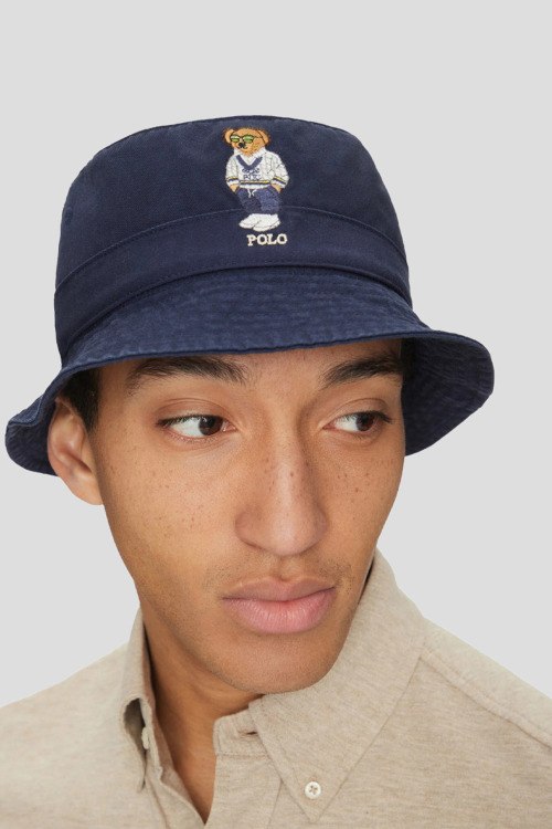 Детали: Мужская темно-синяя хлопковая панама Polo Bear от Polo Ralph Lauren (Поло Ральф Лорен). Вышитый логотип, тональная строчка, закругленные поля