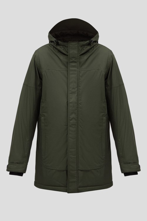 Детали: Мужская темно-зеленая парка от CMP (СМП). Вшитый капюшон, нашивка с логотипом на рукаве, боковые карманы, застежка на молнию и кнопки, трикотажные манжеты, удлиненная длина