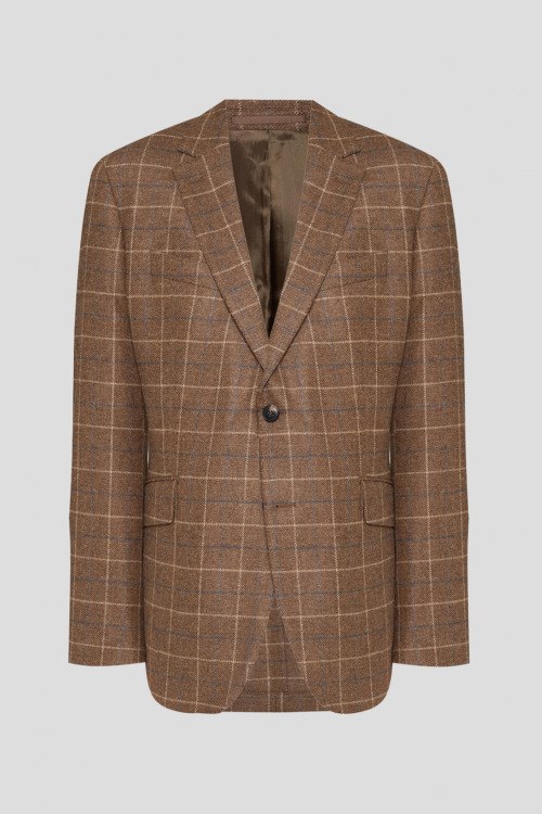Детали: Мужской коричневый шерстяной пиджак от Hackett (Хаккетт). Модель с примесью кашемира, клетка по всей поверхности, три кармана, застежка на две пуговицы. Длина рукава: длинный, для размера 42 - 65 см, обхват груди: для размера 42 - 100 см, обхват талии: для размера 42 - 100 см, длина изделия по среднему шву спинки от горловины: для размера 42 - 74 см