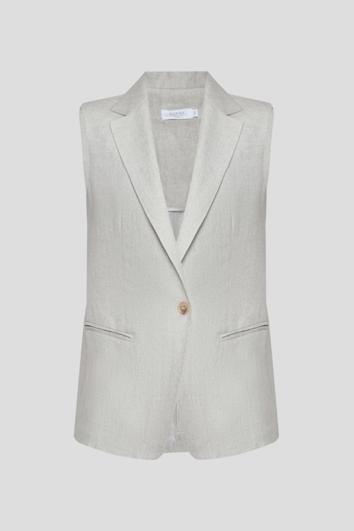 Детали: Мужской светло-серый льняной жилет от Barba Napoli (Барба Наполи). Отложной воротник, застежка на одну пуговицу, два кармана, классическая длина. Обхват груди: для размера 42 - 100 см, обхват талии: для размера 42 - 88 см, обхват бедер: для размера 42 - 100 см, длина изделия по среднему шву спинки от горловины:для размера 42 - 67 см