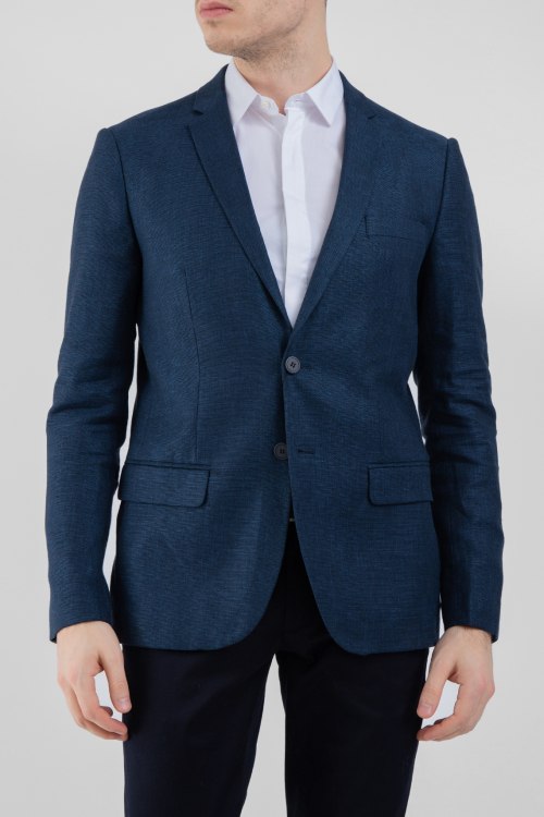 Мужской темно-синий хлопковый пиджак от Antony Morato (Энтони Морато). Средняя длина, классический воротник, три кармана, застежка на две пуговицы, низ рукавов с пуговицами.