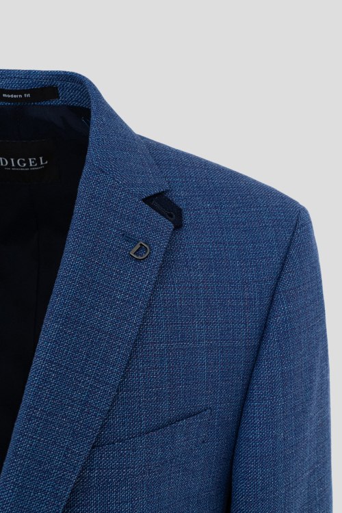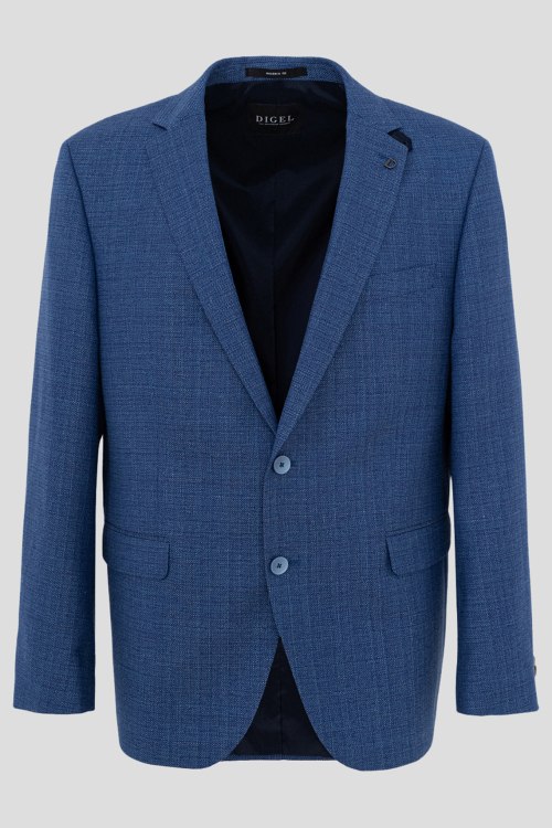 Детали: Мужской синий пиджак Ezzo из шерсти и шелка от Digel (Дигель). Отложной воротник, застежка на пуговицы, боковые карманы с клапаном, прорезной внутренний карман, фигурный низ изделия