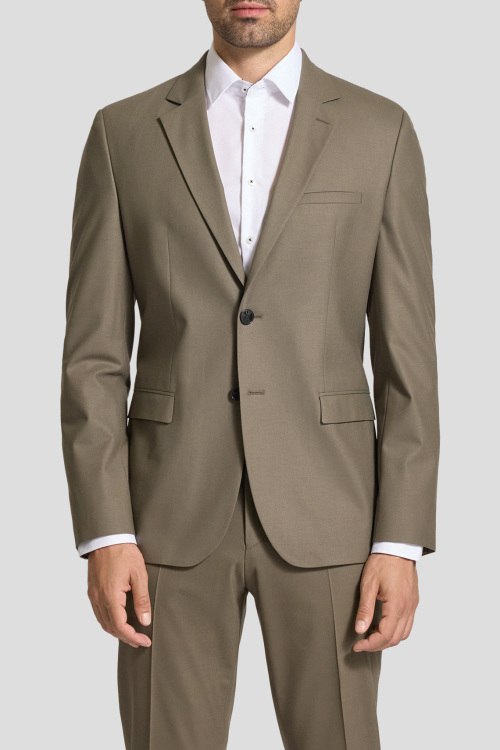 Детали: Мужской оливковый шерстяной пиджак Arti от Hugo by Hugo Boss (Хуго бай Хуго Босс). Отложной воротник, три кармана, застежка на две пуговицы, классическая длина