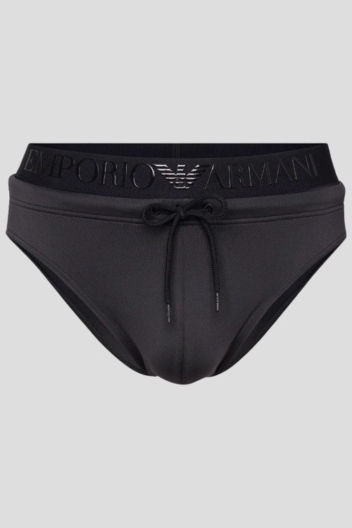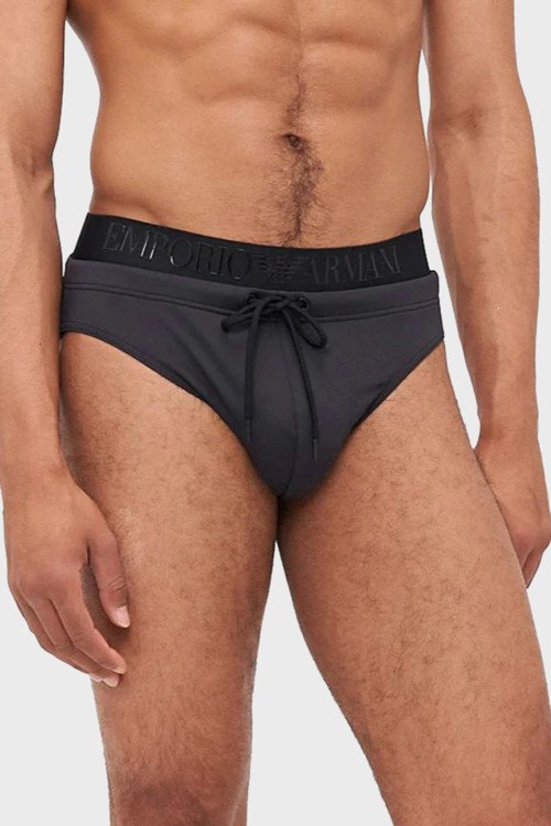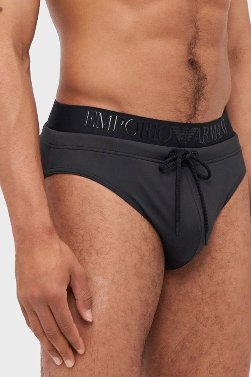 Детали: Мужские черные плавки из полиамида и эластана от Emporio Armani (Эмпорио Армани). Широкая эластичная резинка на поясе с логотипом бренда, кулиска в поясе