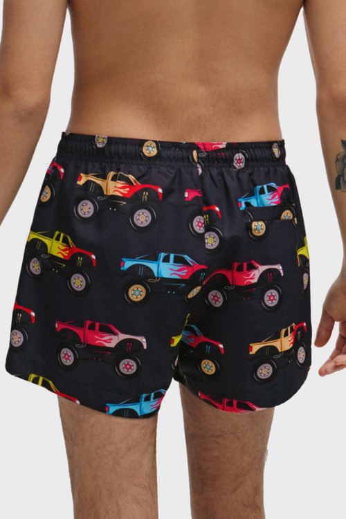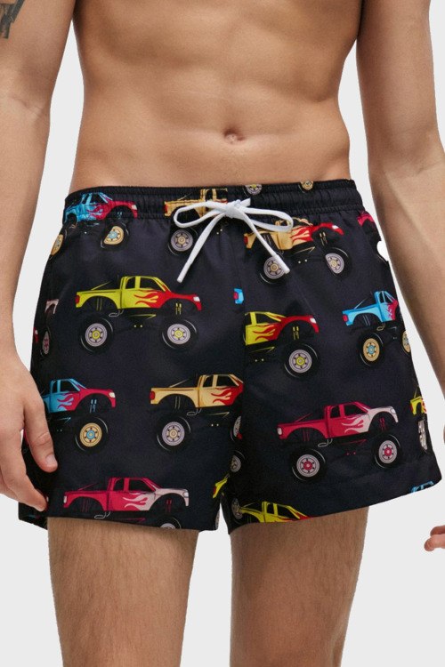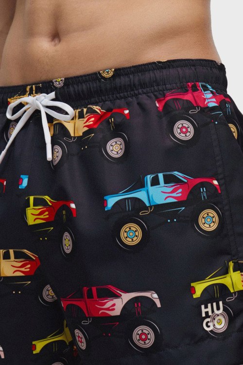 Детали: Мужские черные пляжные шорты от Hugo by Hugo Boss (Хуго бай Хуго Босс). Принт по всей поверхности, эластичный пояс на завязках, короткая длина