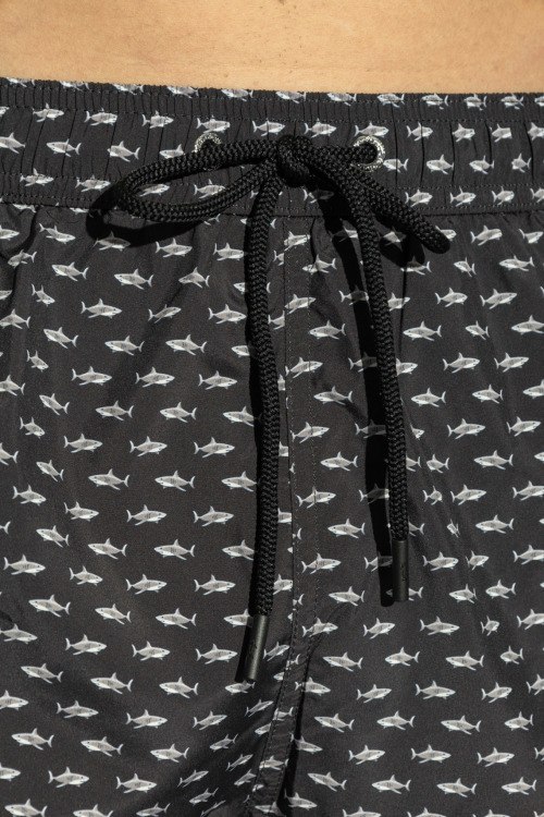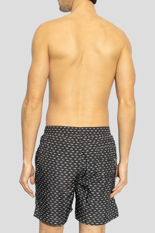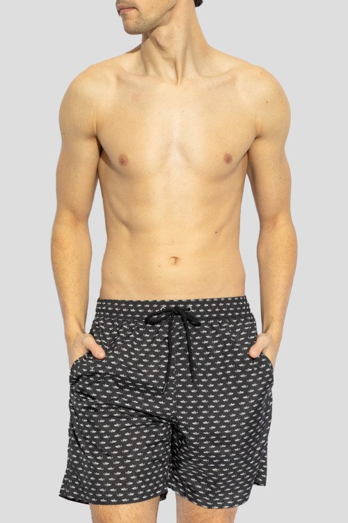 Детали: Мужские черные пляжные шорты от Paul & Shark (Пол энд Шарк). Принт по всей поверхности, эластичный пояс на завязках, боковые карманы, длина выше колен