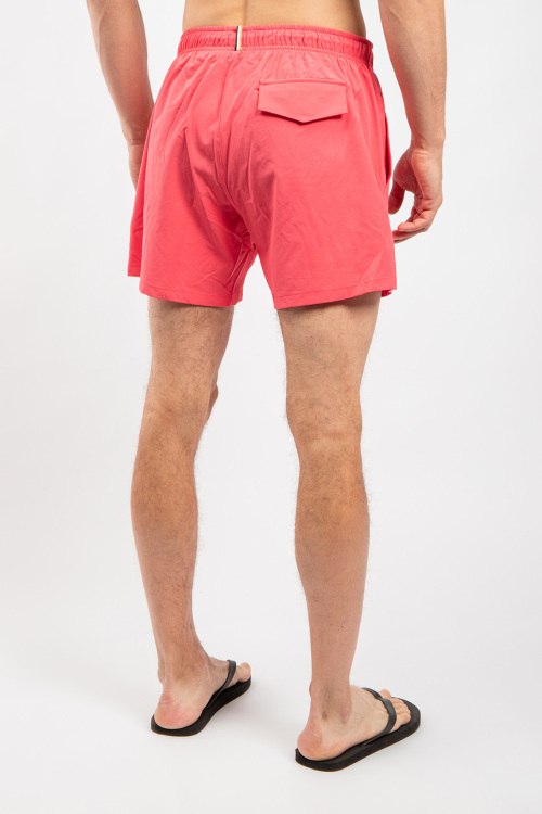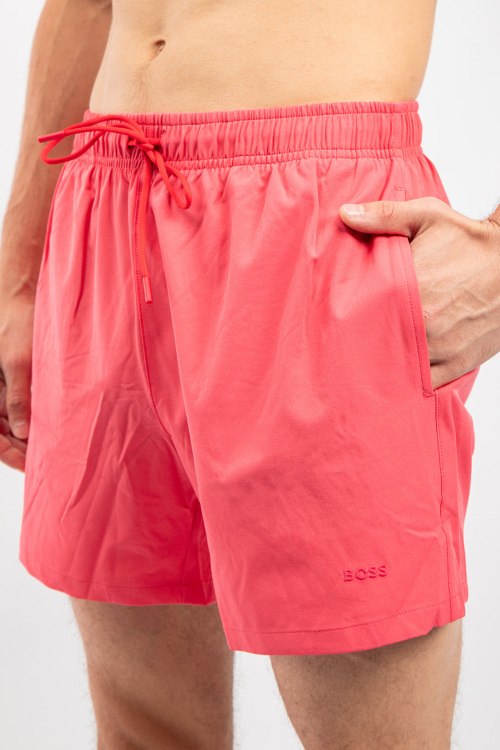 Мужские коралловые пляжные шорты от Hugo Boss (Хуго Босс). Вышитый логотип, эластичный пояс на завязках, боковые карманы, короткая длина.