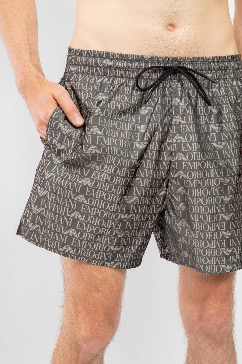 Детали: Мужские коричневые шорты из полиамида и полиэстера от EA7 Emporio Armani (ЕА7 Эмпорио Армани). Эластичная резинка на поясе, свободный силуэт, длина до колена, прорезные карманы, дизайн с принтом