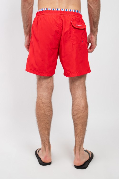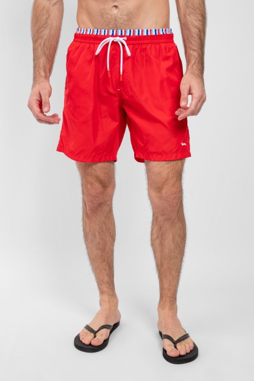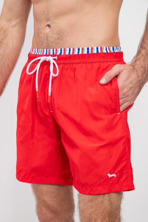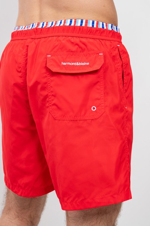 Мужские красные пляжные шорты от Harmont & Blaine (Хармонт энд Блейн). Эластичный пояс на завязках, боковые карманы, вышитый логотип, длина выше колен.