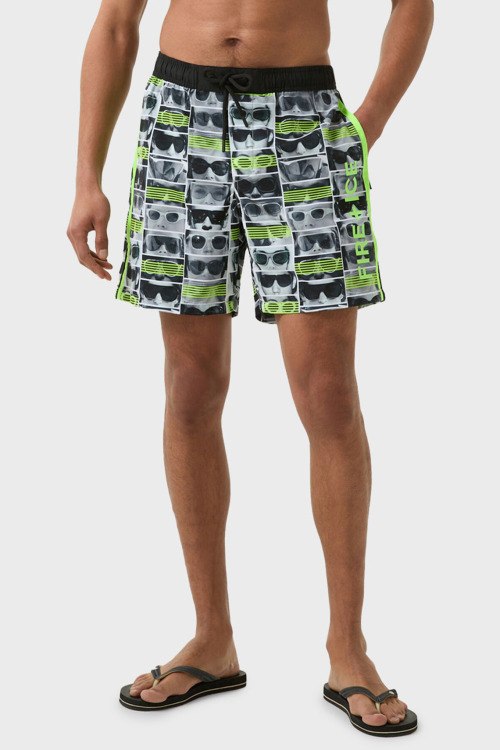 Детали: Мужские пляжные шорты Sorin из полиэстера от Bogner Fire+Ice (Богнер Фаер+Айс). Длина до середины бедра, эластичная резинка на поясе с кулиской, дизайн с принтом по всей поверхности изделия, патч-лого, прорезные карманы