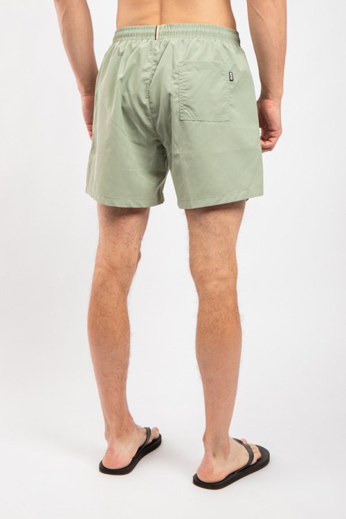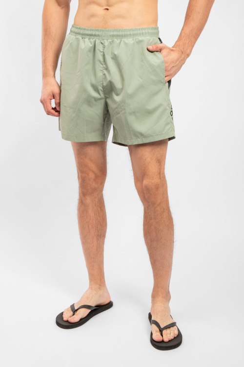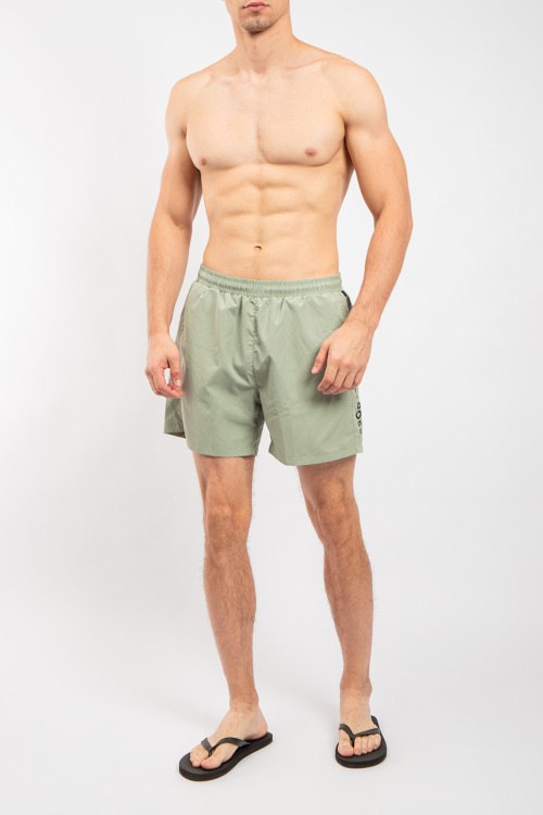 Мужские мятные пляжные шорты от Hugo Boss (Хуго Босс). Принт логотипа, эластичный пояс, боковые карманы, короткая длина.
