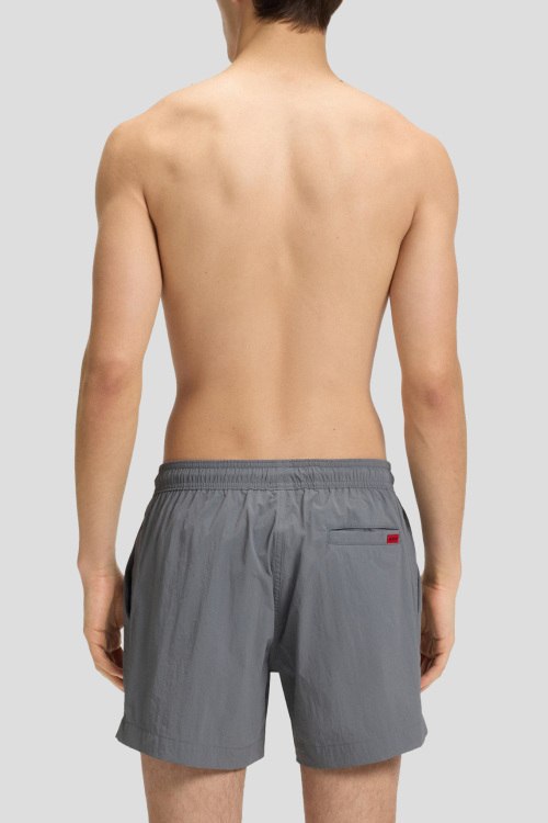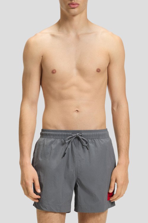 Детали: Мужские серые пляжные шорты Dominica от Hugo by Hugo Boss (Хуго бай Хуго Босс). Эластичный пояс на завязках, нашивка логотипа, боковые карманы, короткая длина