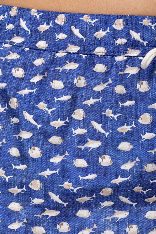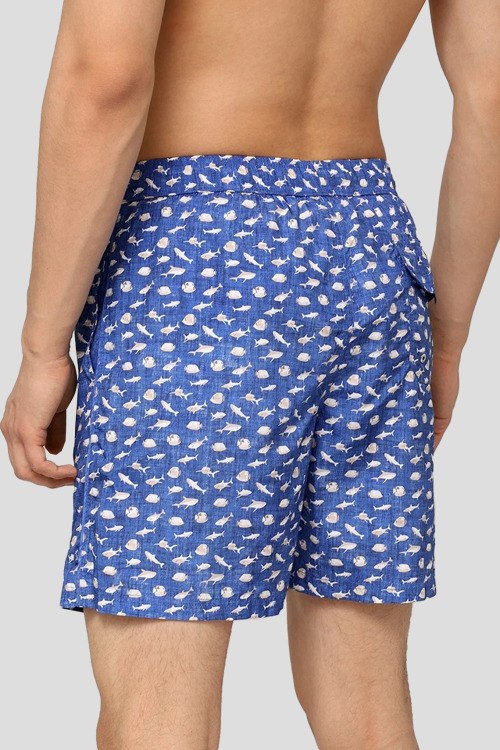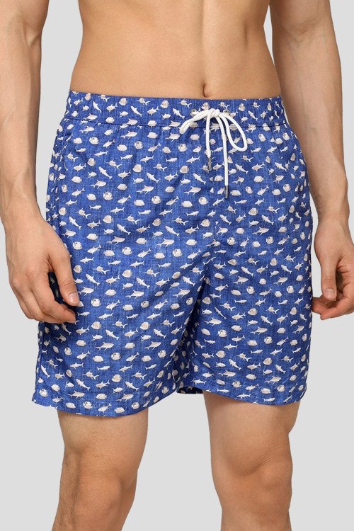 Детали: Мужские синие пляжные шорты от Paul & Shark (Пол энд Шарк). Принт по всей поверхности, эластичный пояс на завязках, боковые карманы, длина выше колен