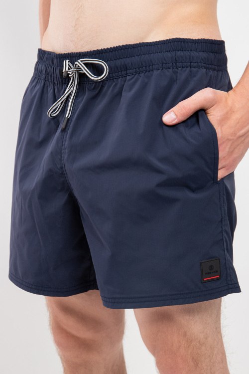 Детали: Мужские темно-синие пляжные шорты Nelson от Bogner (Богнер). Эластичный пояс на завязках, боковые карманы, нашивка с логотипом, длина выше колен