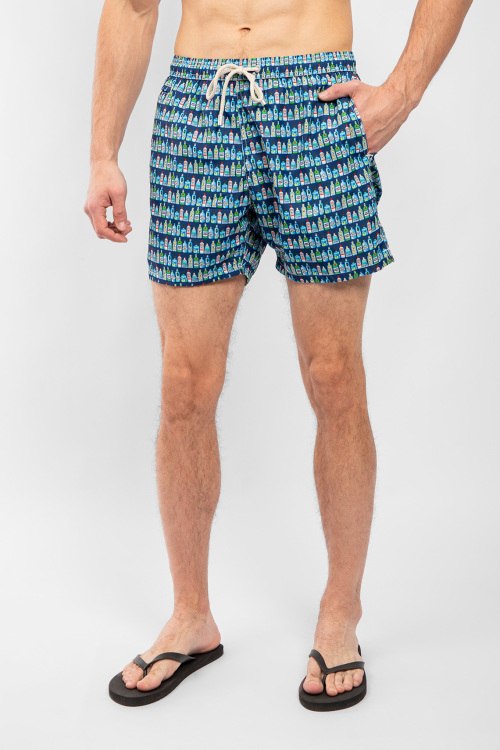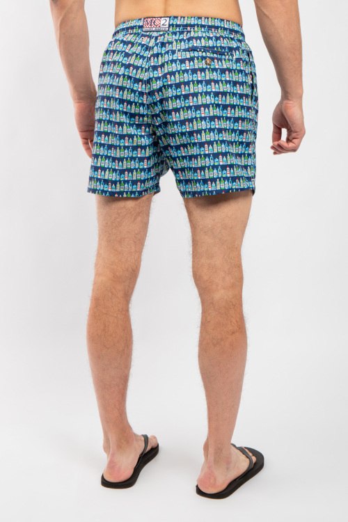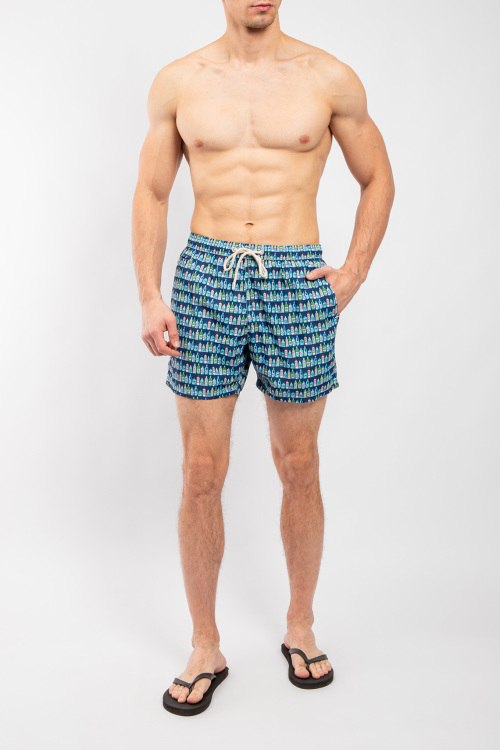 Детали: Мужские темно-синие пляжные шорты от Mc2 Saint Barth (Mc2 Сент Барт). Принт по всей поверхности, эластичный пояс на завязках, боковые карманы, один карман сзади, длина выше колен