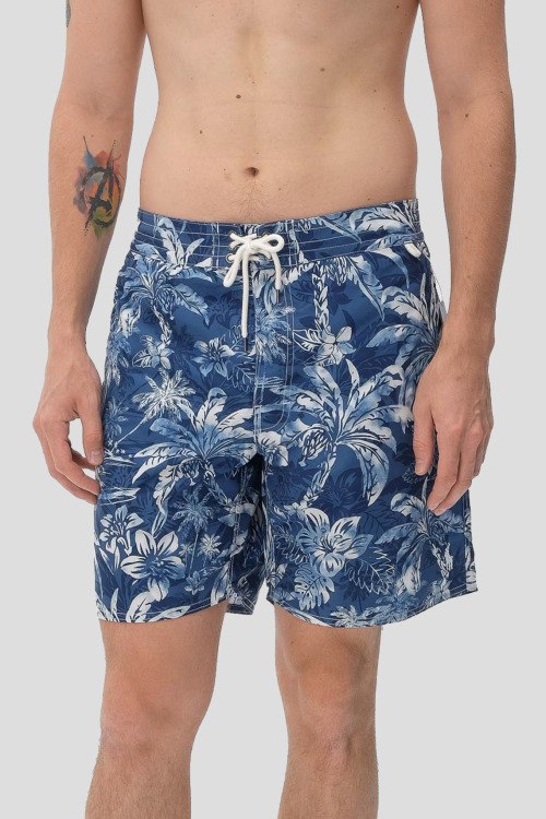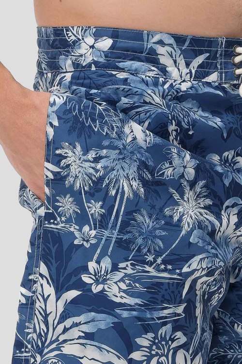 Детали: Мужские темно-синие пляжные шорты от Polo Ralph Lauren (Поло Ральф Лорен). Принт по всей поверхности, эластичный пояс на завязках, боковые карманы, длина до колен