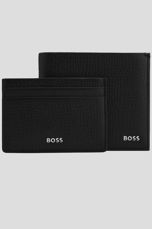 Детали: Мужской набор из натуральной кожи от Hugo Boss (Хуго Босс). Набор состоит из кошелька и визитницы, фирменная упаковка. Кошелек без застежки, слоты для кредитных карт, отделения для купюр, визитница с 5 слотами для кредитных карт и визиток