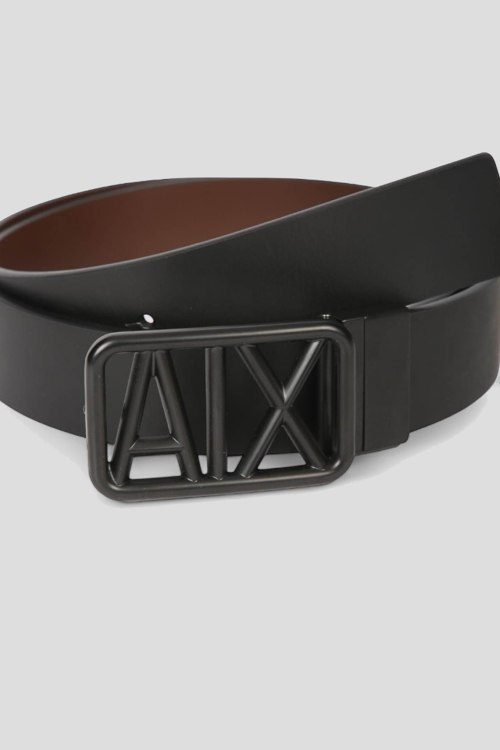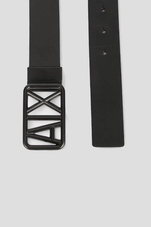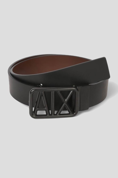 Детали: Мужской черный кожаный ремень от Armani Exchange (Армани Эксчендж). Модель из гладкой кожи, металлическая пряжка в виде логотипа