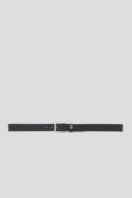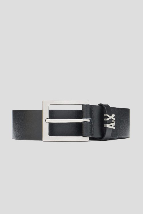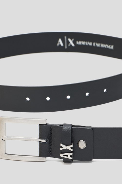 Детали: Мужской черный кожаный ремень от Armani Exchange (Армани Эксчендж). Модель из гладкой кожи, значок с логотипом, металлическая пряжка