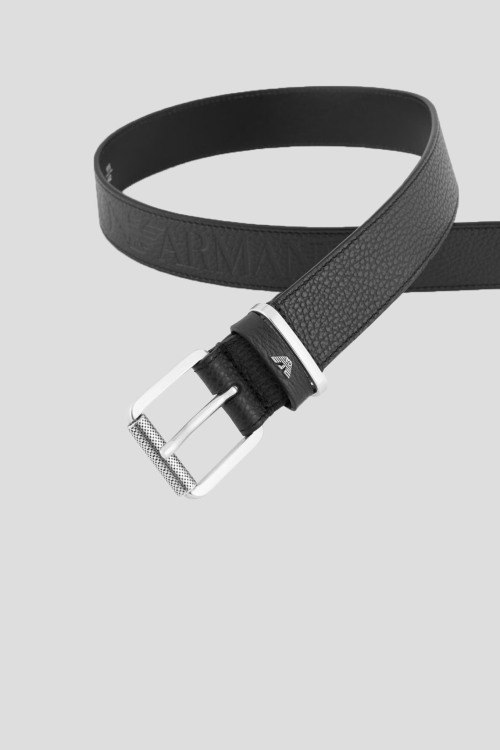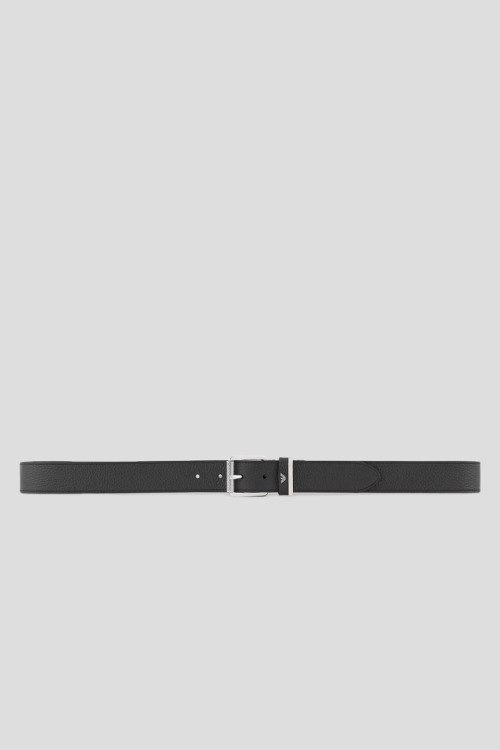 Детали: Мужской черный кожаный ремень от Emporio Armani (Эмпорио Армани). Модель из зернистой кожи, металлическая пряжка с логотипом