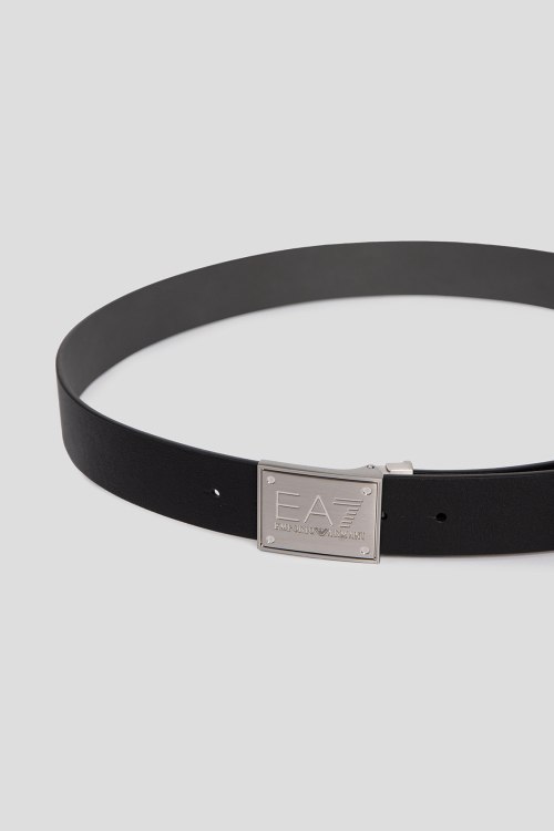 Детали: Мужской черный ремень из экокожи от EA7 Emporio Armani (ЕА7 Эмпорио Армани). Регулируемый размер, металлическая пряжка с логотипом