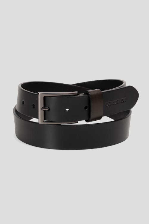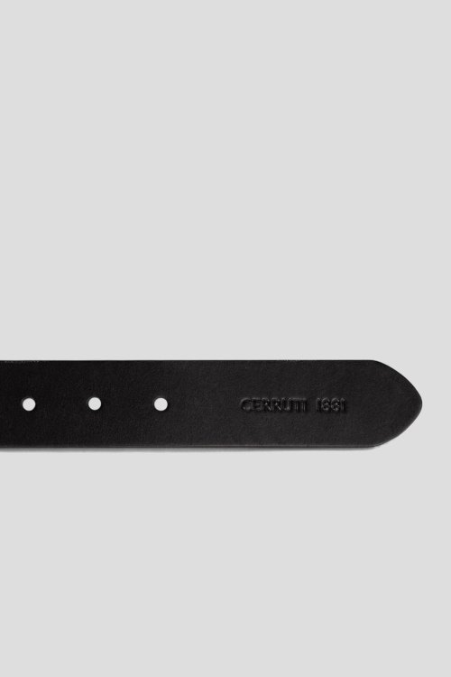 Детали: Мужской черный ремень из натуральной кожи от Cerruti 1881 (Черрути 1881). Классическая пряжка, регулируемый размер, тиснение с логотипом бренда