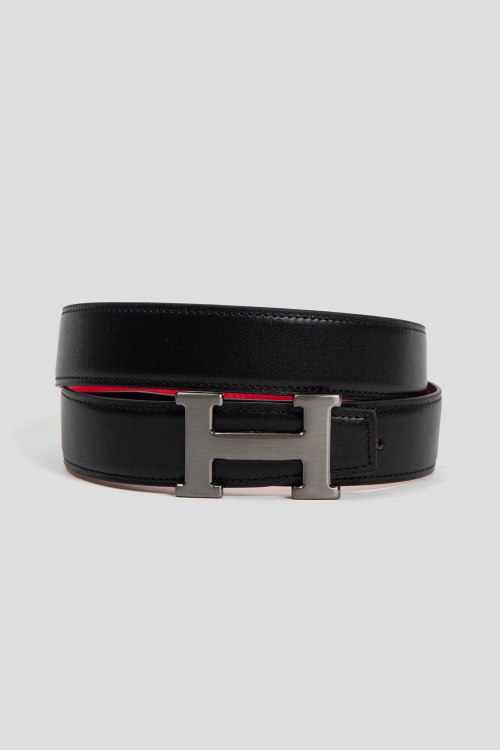 Детали: Мужской черный кожаный ремень от Hermes (Эрме́с). Модель из гладкой кожи, металлическая серебристая пряжка в виде логотипа. Замеры: высота 2,5 см, длина с пряжкой 103,5 см