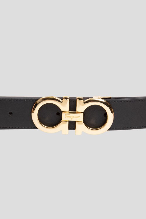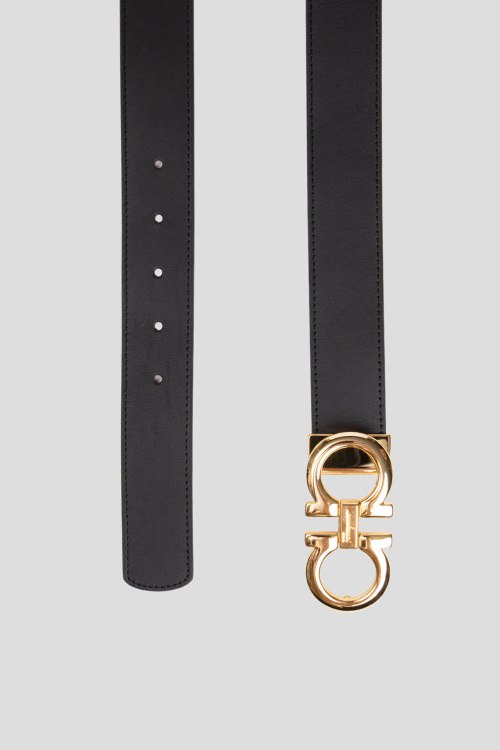 Детали: Мужской черный кожаный ремень от Salvatore Ferragamo (Сальваторе Феррагамо). Модель из гладкой кожи, золотистая пряжка. Ширина - 3,5 см, длина - 106 см