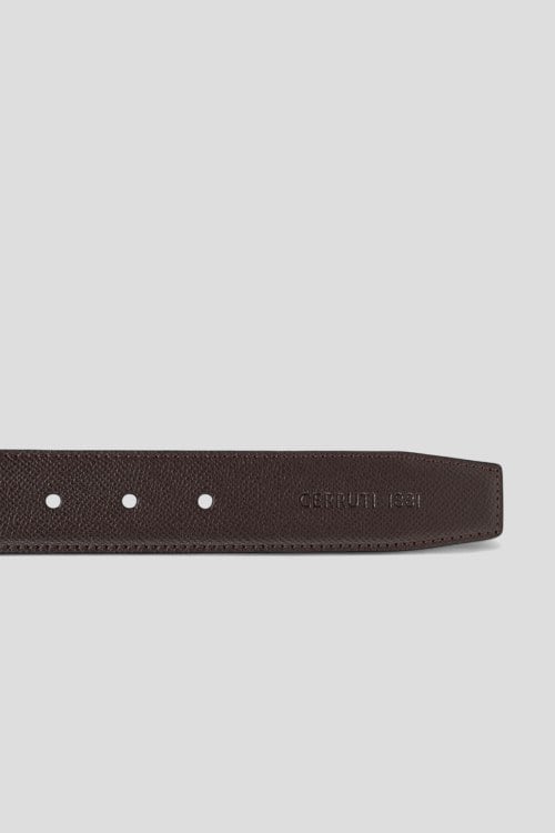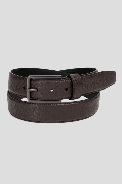 Детали: Мужской темно-коричневый ремень из натуральной кожи от Cerruti 1881 (Черрути 1881). Классическая пряжка, регулируемый размер, тиснение с логотипом бренда