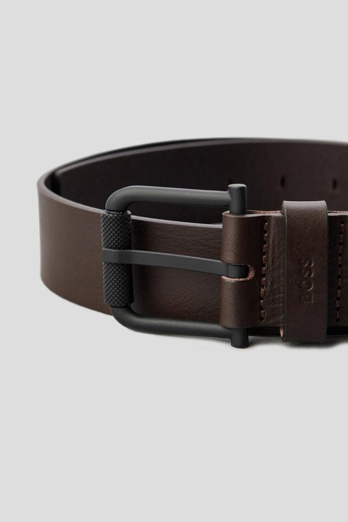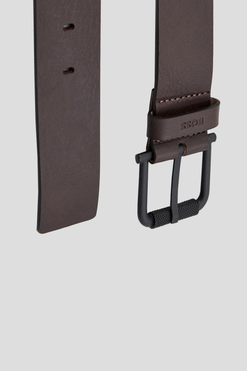 Детали: Мужской темно-коричневый кожаный ремень Jax от Hugo Boss (Хуго Босс). Модель из гладкой кожи, черная матовая пряжка. Ширина 4 см