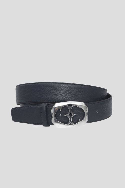 Детали: Мужской темно-синий ремень из натуральной кожи от Billionaire (Биллионер). Регулируемый размер, металлическая пряжка с логотипом бренда, в комплекте - мешочек-пыльник. Измерения: ширина - 4см, длина 120 см,