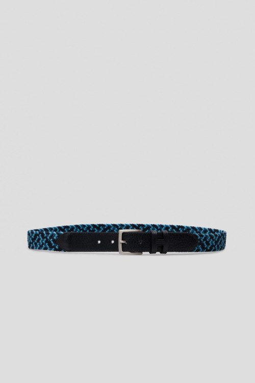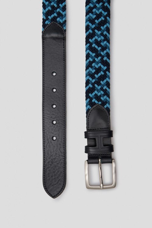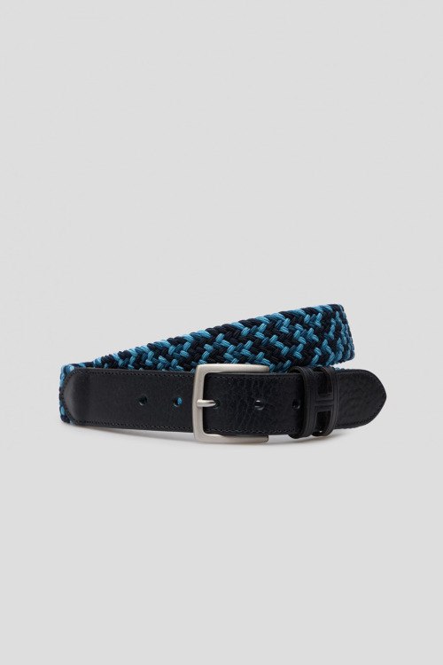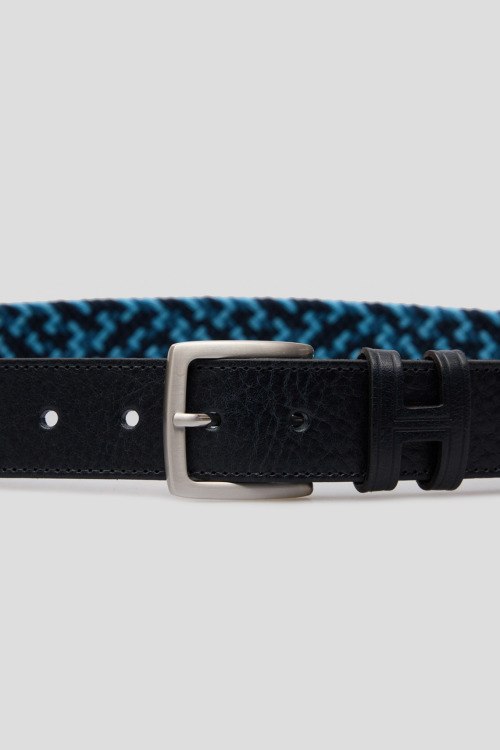 Детали: Мужской темно-синий ремень из кожи и текстиля от Hackett (Хаккетт). Фактурное плетение, металлическая пряжка. Ширина: 3,5 см